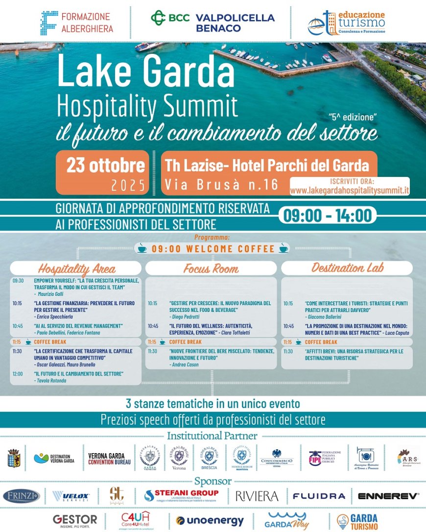 L’iniziativa, ideata e promossa da Maurizio Galli, Direttore della scuola Formazione Alberghiera, nasce dalla collaborazione strategica con BCC Valpolicella Benaco Banca e Educazione Turismo. Dopo il successo delle edizioni precedenti, il Summit 2025 si distingue per un approccio rinnovato che risponde alle esigenze di un mercato in rapida trasformazione.