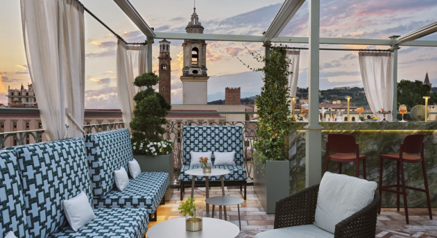 L’offerta complessiva della struttura si arricchisce di elementi che ampliano il concetto di lusso contemporaneo: la Spa dotata di piscina interna riscaldata e l’esclusiva Spa Suite privata, un’unicità nel panorama veronese, unitamente all’Infinity Bar, uno spazio di rara sofisticazione dove assaporare l’atmosfera della città in ogni periodo dell’anno.